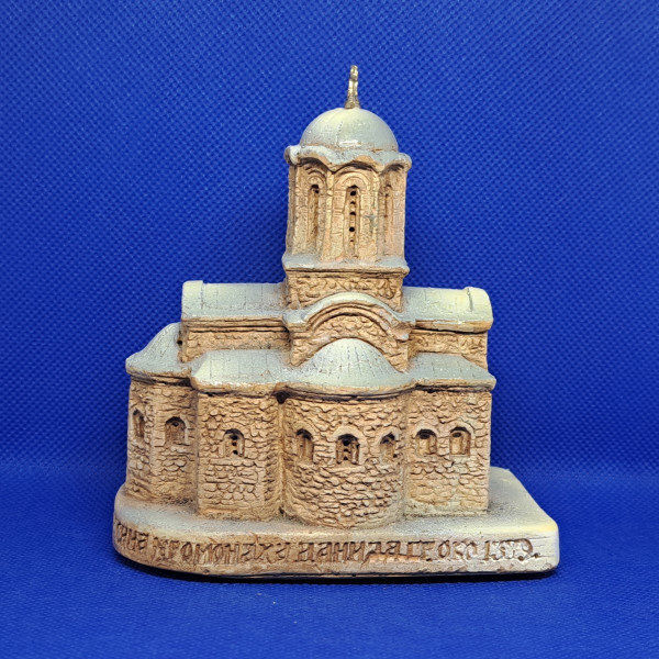 Maketa manastira je ručni rad, napravljena od tvrdog gipsa i ručno dekorisana.