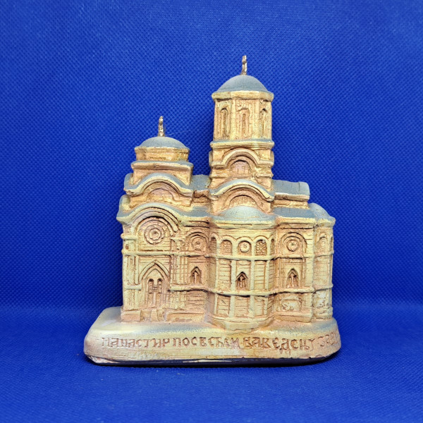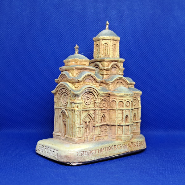 Maketa manastira je ručni rad, napravljena od tvrdog gipsa i ručno dekorisana.