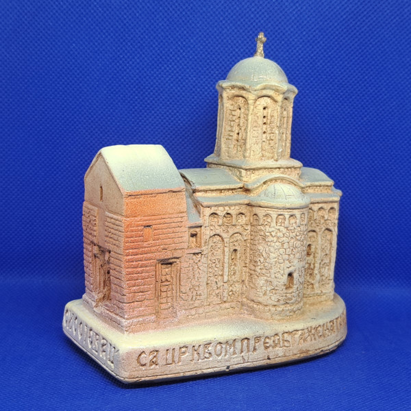 Maketa manastira je ručni rad, napravljena od tvrdog gipsa i ručno dekorisana.