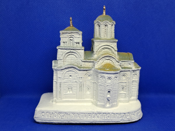 Maketa manastira je ručni rad, napravljena od tvrdog gipsa i ručno dekorisana.